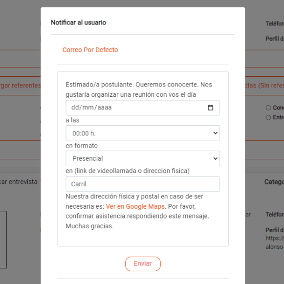 Servicio de almacenamiento de perfiles de postulantes voluntarios registrados en un vínculo privado de "Dejá tu CV"